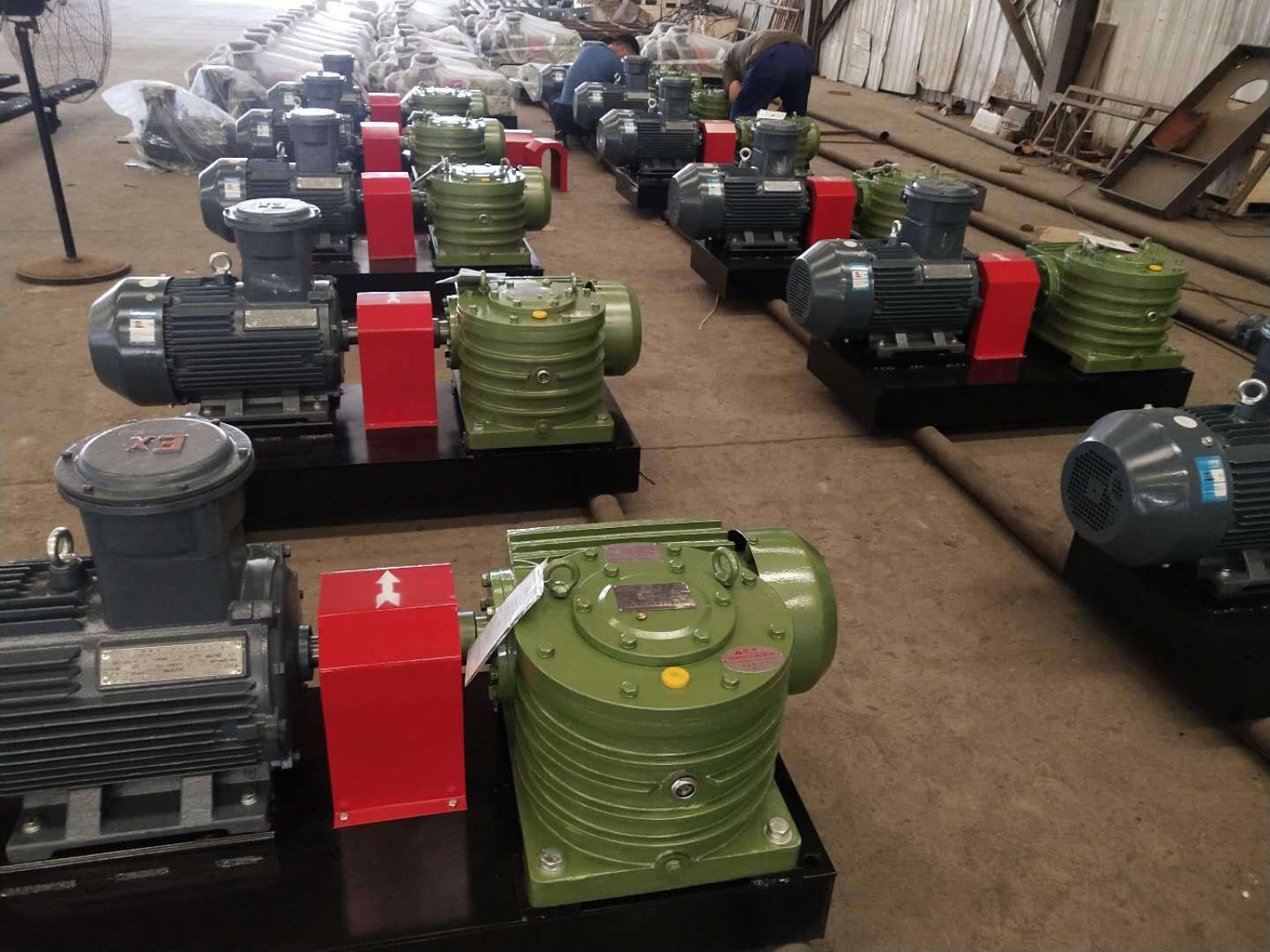 泥漿攪拌器根據減速機可分為: 蝸輪蝸桿減速機型攪拌器、齒輪減速機攪拌器、平面包絡減速機攪拌器及小型的擺線針輪攪拌器。 泥漿攪拌器主要由防爆電機,減速器,機座及波輪組件組成,電機與減速器,減速器與波輪軸均通過剛性聯軸器相連接。波輪由4只葉片組焊而成。